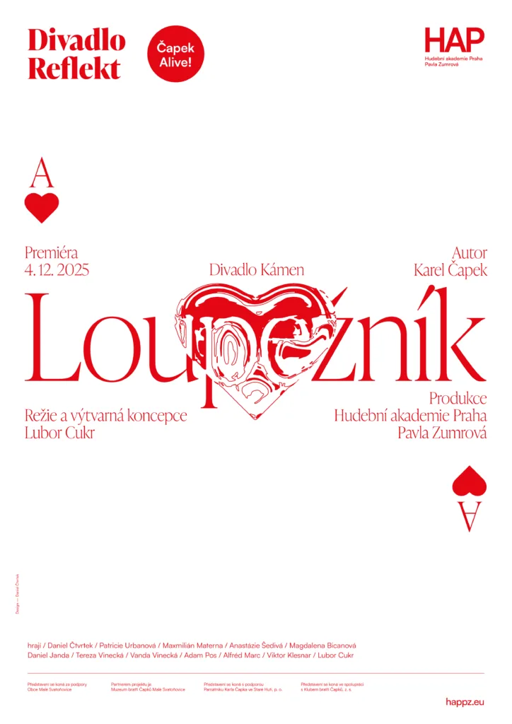 Hrají: Lubor Cukr, Daniel Čtvrtek, Patricie Urbanová, Viktor Klesnar, Adam Pos, Daniel Janda, Alfréd Marc, Luisa Elmerová, Anastázie Šedivá